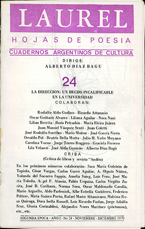 Rodolfo Aldo Godino, RicardoAttanasio, Oscar Guiñazú Alvarez, Liliana Aguilar, Nora Nani, Lilian Beretta, Boris Petrashin, María Elvira Juárez, Juan Manuel Vásquez Sentí, Juan Coletti, José Rodolfo Sorribes, Mario Muñoz, José García Nieto, Olvaldo Pol, Beatriz Della Motta, Julio H. Yofre Moyano, Carolina Vocos, Jorge Torres Roggero, Graciela Ferrero, Lila Velasco, José Aldo Guzmán y Alberto Díaz Bagú.